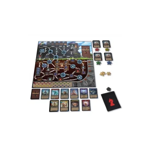 Le jeu contient 1 plateau double face, + de 180 cartes, + de 80 jetons, 144 cubes, 4 pions joueurs, un sac dragon, un pion dragon et les règles du jeu.