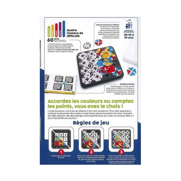 Découvrez le jeu Code Quantum de SmartGames, un jeu de logique et de réflexion pour jouer dès 10 ans, qui mettra à l’épreuve aussi bien votre sens des chiffres que votre perception des couleurs.