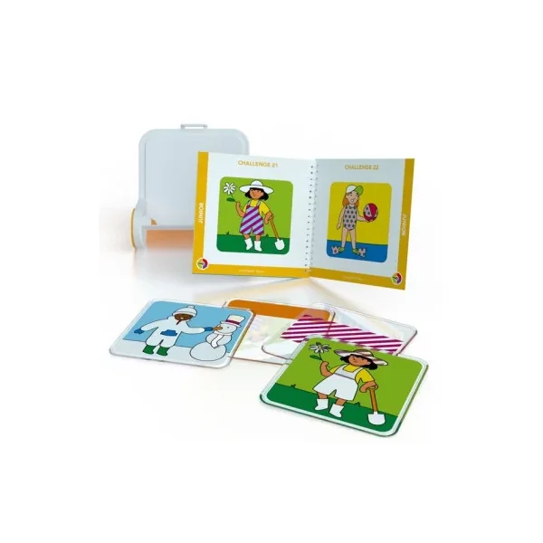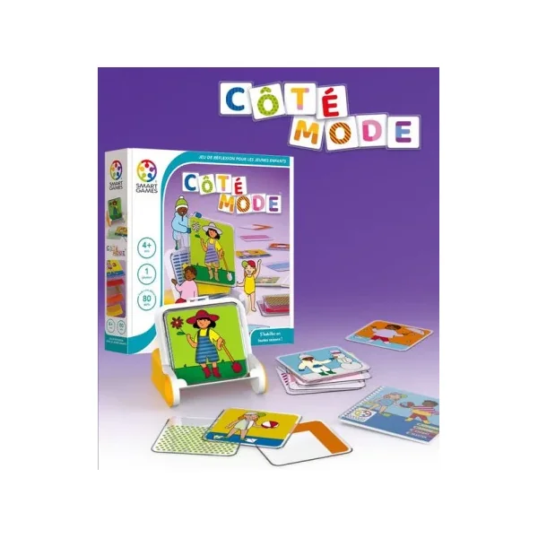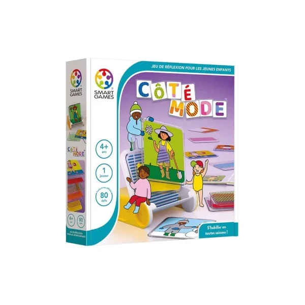Découvrez le jeu Côté mode de Smartgames, un jeu de logique et de défis pour les enfants à partir de 4 ans où vous devrez réaliser 80 défis avec 4 niveaux de difficulté en organisant la pose des tuiles nécessaires pour habiller les personnages selon le modèle.