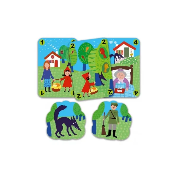 Les enfants auront plaisir à retrouver les personnages de la célèbre histoire. Grâce à ses propres cartes ou à celles des autres joueurs qu’il peut voler grâce au loup, un joueur remporte la partie lorsqu’il est le premier à réunir les 6 cartes constituant le conte.