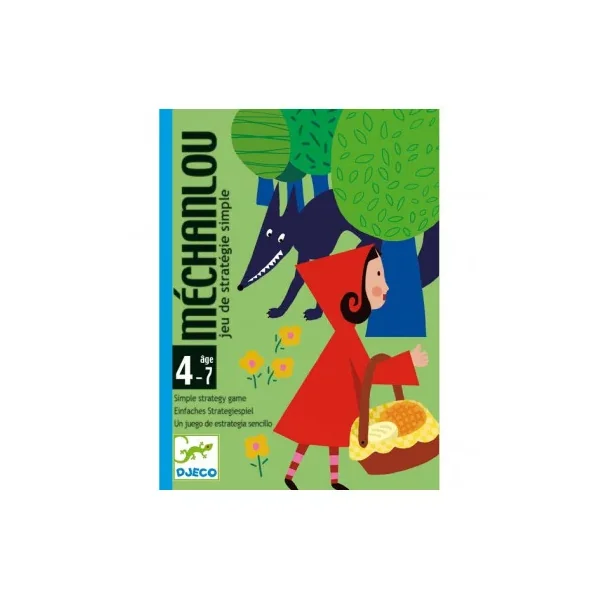 Découvrez Méchanlou de Djeco, un jeu de stratégie simple inspiré du conte du Petit Chaperon Rouge pour les enfants de 4 à 7 ans. Un jeu de cartes où réflexion et stratégie seront nécessaires pour déjouer les malices de ce jeu.
