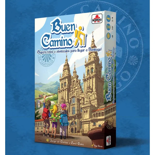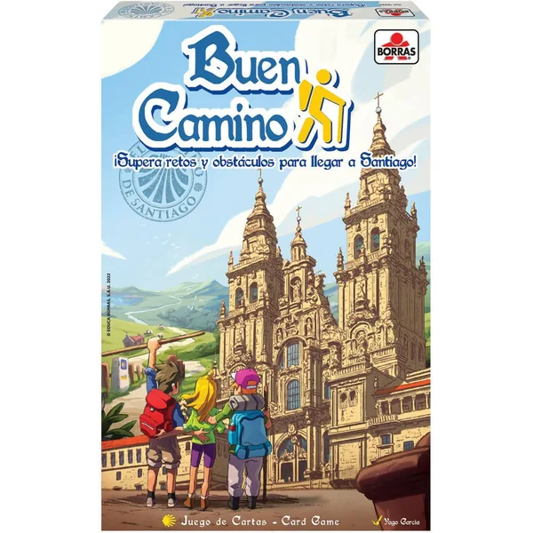 Depuis des siècles, le chemin de Saint-Jacques-de-Compostelle rassemble des pèlerins du monde entier qui, pour diférentes raisons, décident d’entreprendre leur voyage année après année. Soyez le premier à arriver à la cathédrale de Saint-Jacques-de-Compostelle et gagnez. Orages, égarements ou ampoules aux pieds vous retarderont dans votre pèlegrinage. Contenu : 96 cartes – 4 pions – Règle du jeu. Pour 2 à 4 joueurs.