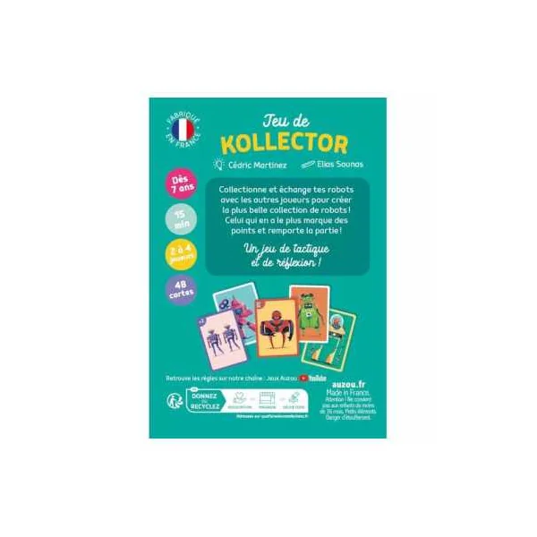 Découvrez le jeu Kollector de Auzou, un jeu de cartes de collection et d’échange pour jouer de 2 à 4 joueurs à partir de 7 ans. Un jeu de cartes fabriqué en France.