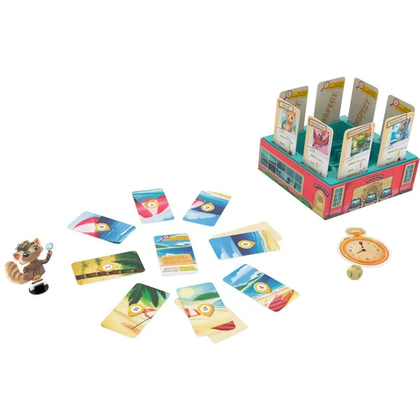 Détective Charlie Holmes a besoin de votre aide pour mener l’enquête ! Il se passe des choses bizarres à Mysterville et les coupables doivent être trouvés… Menez l’enquête avec Détective Charlie, un premier jeu d’investigation et de déduction pour les enfants de 7 ans et plus ! Détective Charlie est un jeu coopératif composé de 6 enquêtes distinctes. Chaque enquête révèle un mystère à résoudre… et un coupable à identifier. Interrogez les habitants, innocentez les suspects Au début de la partie, les dossiers de 5 suspects sont sur le bureau de Charlie. Pour les innocenter, elle doit parcourir le village de Mysterville et interroger les témoins. En retenant les informations qu’ils lui transmettent et en effectuant des recoupements dans leurs déclarations, Charlie sera alors en mesure d’innocenter les suspects les uns après les autres. En effet, l’un des témoins peut fort bien innocenter l’un des suspects, qu’il aurait vu ailleurs au moment de faits. Et à Mysterville, tout le monde dit toujours la vérité ! Une fois que tous les témoins se sont exprimés, les joueurs seront alors en mesure d’identifier le coupable, qui devra alors expliquer les circonstances de sa petite bêtise. Histoires et déductions Détective Charlie est un jeu d’enquête particulièrement enthousiasmant, aux illustrations colorées et aux histoires particulièrement mignonnes. Les joueurs naviguent de témoin en témoin en prenant garde au temps qui passe, sans quoi Charlie sera en retard pour son thé ! C’est un jeu immersif et attachant, dans lequel les plus grands pourront faire la lecture aux plus petits et dans lequel tout le monde cherche le coupable en faisant ses premières déductions ! Chaque nouvelle enquête est l’occasion de s’amuser tous ensemble de l’incorrigible loufoquerie des habitants de Mysterville ! De 1 – 5 joueurs – 25 minutes.