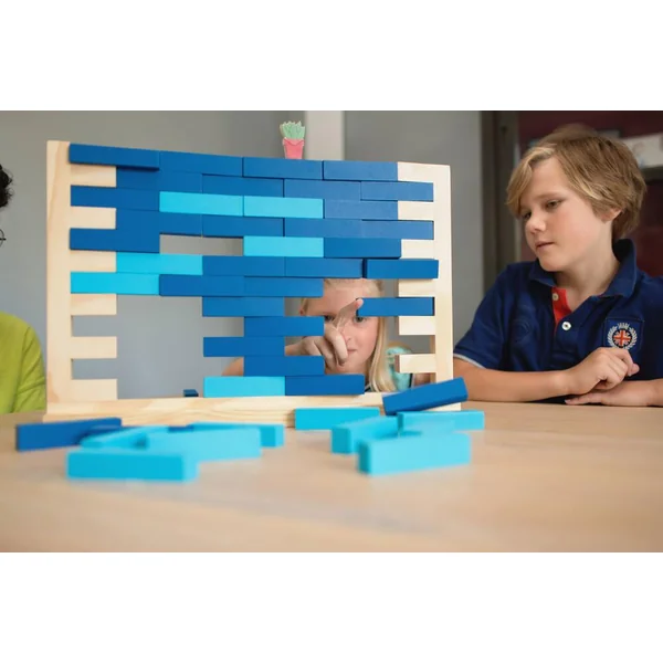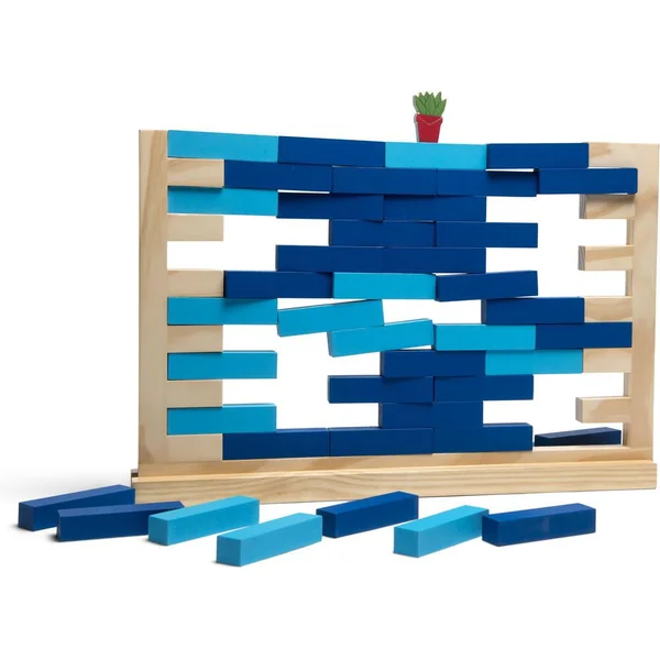 Retirez les briques du mur une à une, mais faites attention à ne pas casser la plante ! Vous pouvez également utiliser les briques pour construire une tour d’équilibre. Contenu : 1 cadre en pin, 48 briques, 1 plante en pot et notice avec les règles des jeux. Dimensions : cadre 50 x 34 cm, brique 2 x 10 x 2.5 cm, de la tour assemblée 36.8 cm. Intérêts pédagogiques pour l’enfant : ce jeu apprend aux enfants à penser logiquement tout en apprenant que la chance joue aussi un rôle dans la victoire. La coordination œil-main est développée par des jeux répétés. Nombre de joueurs 1-4- Durée de la partie 20 minutes.