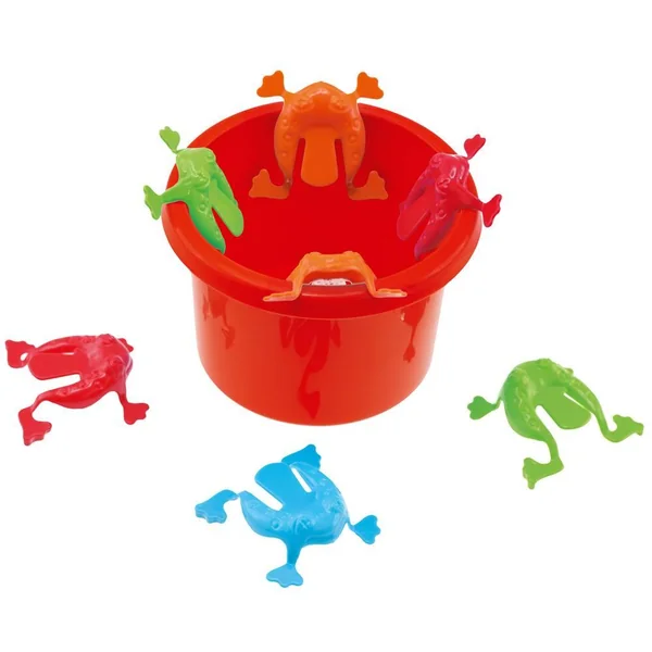 Le mini seau contient 12 grenouilles de 4 couleurs différentes. Jeu d’adresse : appuie sur la languette pour la faire sauter. Le but est de faire sauter tes grenouilles dans le seau. Le joueur qui réussit à mettre ses grenouilles dans le seau en un minimum de temps a gagné la partie. 4 coloris de grenouilles assortis : vert, rouge, orange et bleu. Dimensions d’une grenouille : 5 x 5 x 2 cm. Dimensions du mini seau : 12 x 12 x 9 cm.