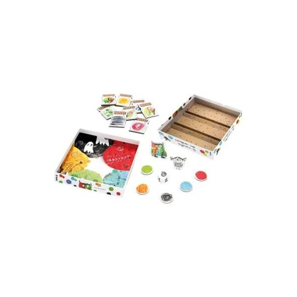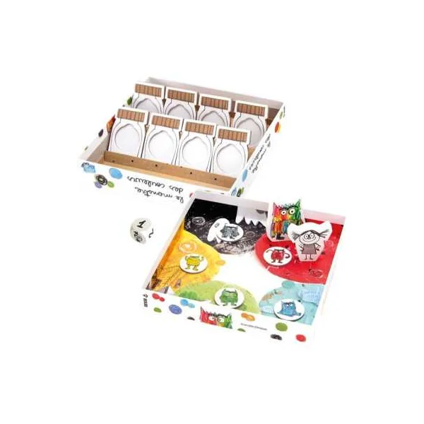 La boîte de jeu contient 1 plateau au fond de la boîte, 1 jeton de Monstre, 1 jeton de petite fille, un dé, 8 jarres en carton, 2 étagères pour les jarres, 5 marqueurs d’émotion.