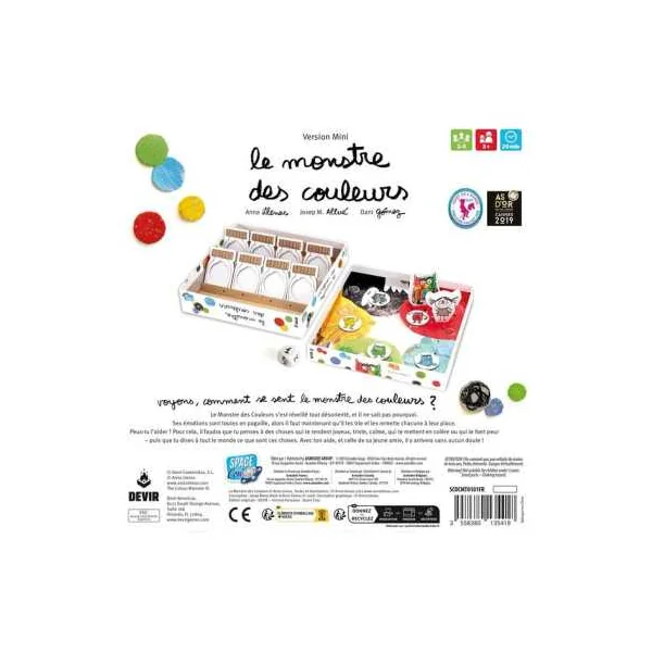 Découvrez le jeu de société Le monstre des couleurs version mini de Space cow, inspiré du best-seller La couleur des émotions d’Anna Llenas, ce jeu permettra aux plus jeunes d’exprimer leurs émotions et de les structurer à partir de 3 ans.