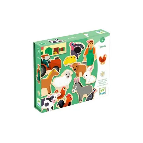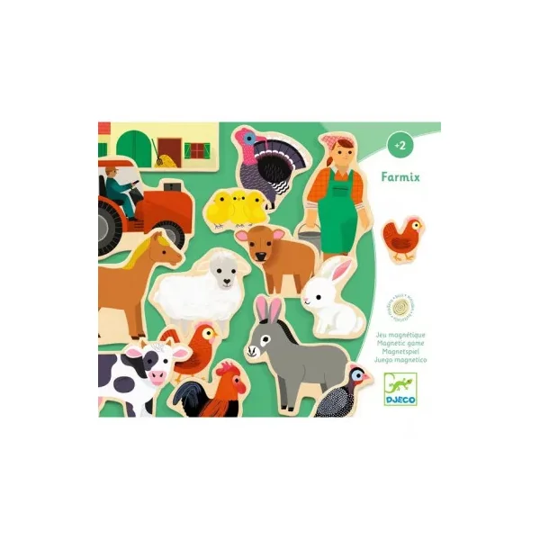 Découvrez le jeu magnétique Farmix de Djeco, un coffret de magnets en bois sur le thème de la ferme, un jeu ludique pour les enfants à partir de 2 ans.