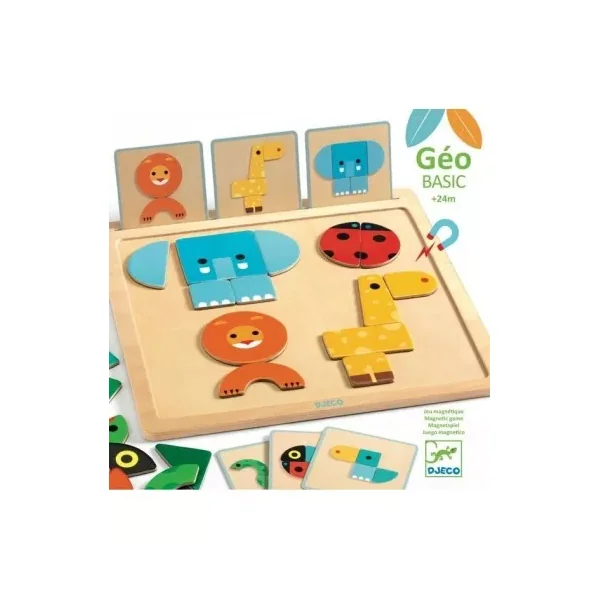 Découvrez le jeu magnétique GeoBasic de la collection « Basic » de Djeco, un jouet éducatif en bois pour les enfants dès 2 ans, un jeu éducatif dont le but est de reproduire des animaux grâce à des éléments magnétiques.