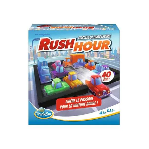 Découvrez le célèbre jeu Rush Hour le jeu des embouteillages, un jeu de logique à partir de 8 ans avec 40 défis évolutifs où vous devrez faire glisser la voiture rouge pour la sortir des embouteillages.