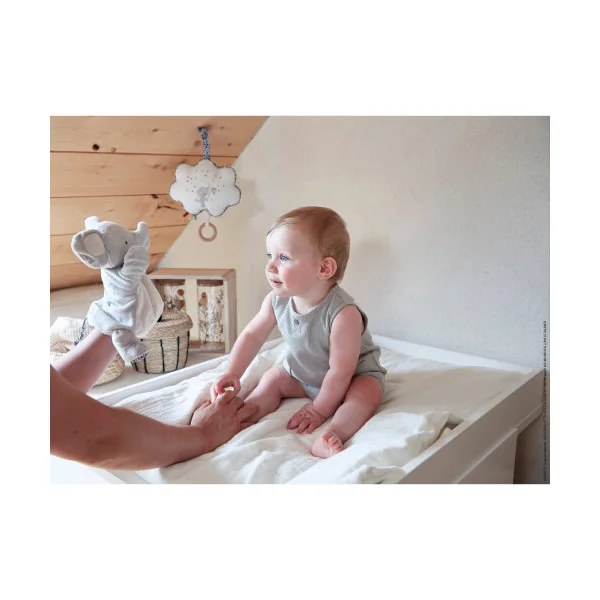 Le nuage musical en tissu Éléphant et étoile de Kaloo sera un compagnon inséparable pour les premiers moments des plus petits bébés. Les comptines pour enfants accompagnées des gestes des parents stimulent le langage, l’attention, la curiosité, mais aussi le développement moteur des tout-petits.