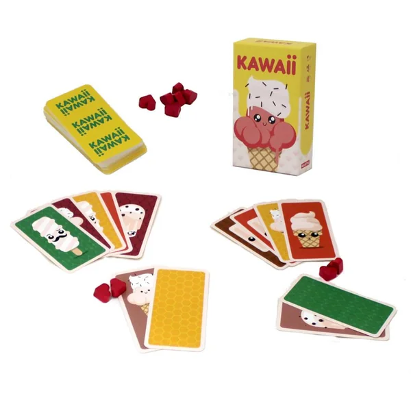 Qui mangera le + de glaces ? But du jeu : Récolter le + de points. Mécanisme : Après que chaque joueur ait choisi son parfum et son type de glace préféré, répartir les cartes équitablement entre les joueurs. Chacun fait une pile face cachée devant lui, et à tour de rôle on retourne sa carte pour la placer en pile découverte devant soi. Pose 1 coeur sur la pile qui te semble la plus intéressante pour toi (beaucoup de glaces de ta forme ou de ton parfum) pour la récupérer à ton adversaire. Tu peux aussi récupérer ta propre pile, mais ton coeur sort alors du jeu ! Décide-toi vite et fais tes choix stratégiquement !