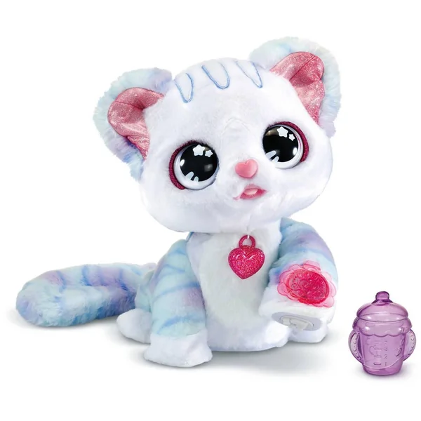 Ruby applique tout seul un joli tatouage pailleté sur ta main ! En peluche, il réagit quand tu le caresses et quand tu le nourris. 1 biberon et 1 tampon pailleté inclus.