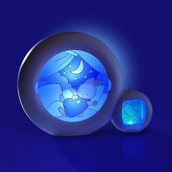 Le Kid’Sleep Moon est un indicateur de réveil tout-en-un qui aide l’enfant à savoir si c’est encore l’heure de dormir ou si c’est l’heure de se lever. Si la figurine est illuminée en position de sommeil avec la lune, c’est encore l’heure de dormir. Au matin, lorsque la lune commence à se coucher (durée ajustable), l’enfant sait que c’est bientôt l’heure de se lever ! A l’heure réglée par les parents, le soleil se lève et la figurine passe en position réveillée, l’enfant sait qu’il peut se lever ! Les parents ont la possibilité de programmer 3 différentes heures: une pour le matin, une pour la sieste et une pour le weekend ! Au réveil, le passage de la position couchée/lune à la position réveillée/soleil peut se faire avec 4 alarmes à choix ou en silence pour respecter le sommeil de l’enfant ! Le Kid’Sleep peut être utilisé dès la naissance comme une veilleuse traditionnelle. Pour aider leur enfant à s’endormir, les parents peuvent mettre en route l’une des 4 berceuses disponibles : 2 musiques, fontaine ou battement du cœur intra-utérin) !