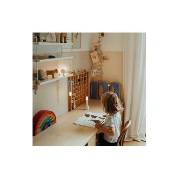 Cette lampe torche deviendra un compagnon de jeu garantissant des heures d’amusement pour les enfants dès 1 an. Utilisez-la comme une lampe torche classique, posez-la sur une surface pour créer une ambiance chaleureuse pendant les histoires au coucher, ou suspendez-la à un tipi grâce à son anneau intégré pour ajouter une touche de magie supplémentaire.