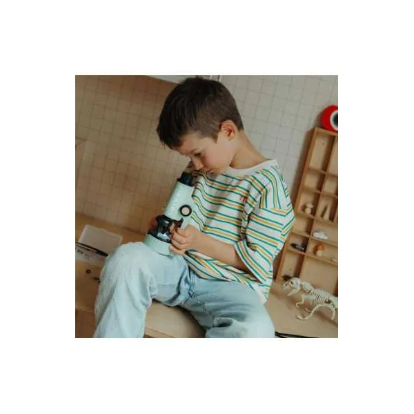 Un microscope portable conçu pour éveiller la curiosité scientifique des jeunes explorateurs. Avec trois niveaux de grossissement et un éclairage adaptable, cet instrument éducatif permet d’explorer en détail les merveilles microscopiques, qu’il s’agisse de la texture d’une feuille ou des détails d’une plume.