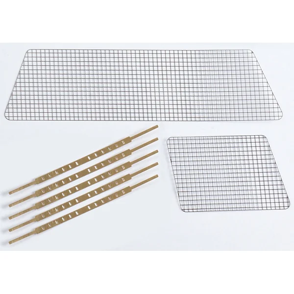 L’emballage contient : une grille en inox pour l’arrière de la carrosserie, une grille en inox pour la vitre avant du conducteur, 8 x bandes en laiton de fixation, mode d’emploi illustré.