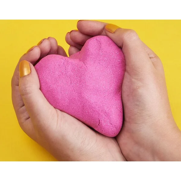 Emballage de pâte cinétique rose scintillante, avec laquelle vous pourrez profiter de beaucoup de plaisir créatif. Modelez-la, pressez-la, construisez ce que vous voulez. Kinetic Sand est un sable modelable original. Il ne sèche jamais, vous pouvez donc y jouer encore et encore.