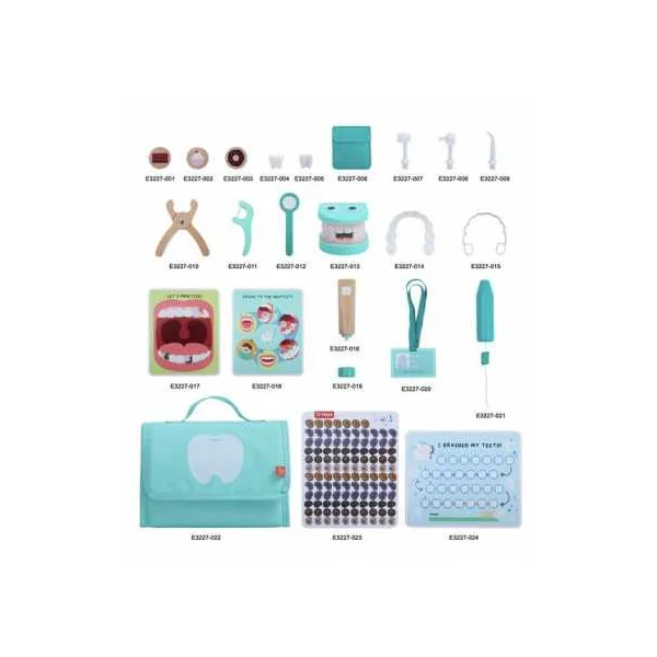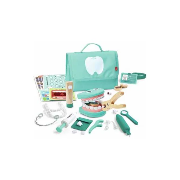 Pour rendre le jeu encore plus réaliste, un badge d’identification factice, des cartes d’activités réutilisables recto-verso, un autocollant de carie dentaire, des dents interchangeables et un sac à dents sont également inclus. Tous les jouets se rangent facilement dans le sac inclus. Un cadeau idéal pour accompagner les enfants dans leurs jeux de rôle et d’imitation.