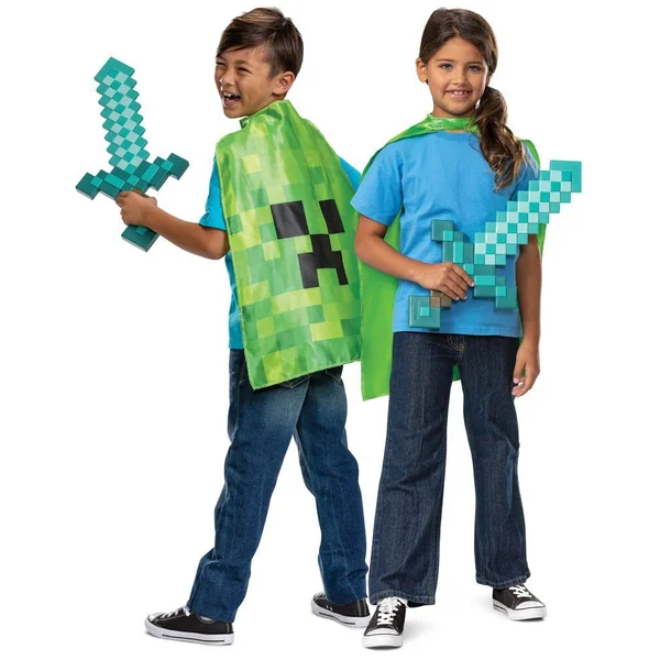 Laisse libre cours à ton imagination et récrée des scènes de ton jeu vidéo favori Minecraft grâce à ce set comprenant la célèbre épée pixellisée ainsi que Le masque plat de Steve !