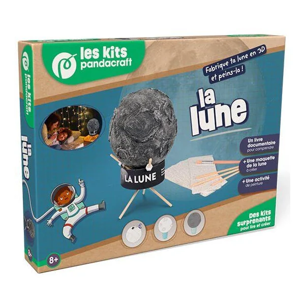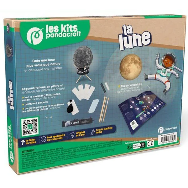 Fabrique une maquette 3D de la Lune en loisir créatif ! Dans ton livre documentaire, découvre ses mystères : sa composition, pourquoi on dit qu’elle brille, ce que sont les éclipses, et bien d’autres choses encore ! Façonne ta Lune en plâtre et reproduis ses différentes phases – Crée ta Lune et ses cratères avec tout le matériel inclus (plâtre, ballon, support…) – Peins-la avec ta peinture et ton pinceau – Reproduis les différentes phases de la Lune à l’aide de ton guide