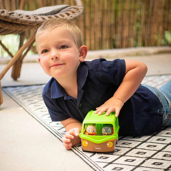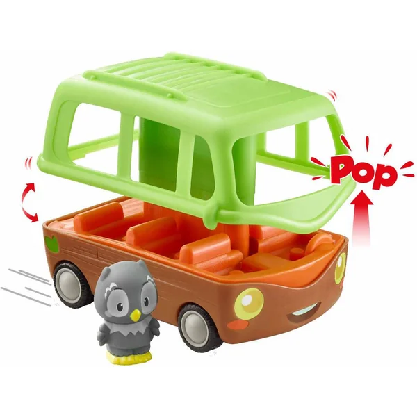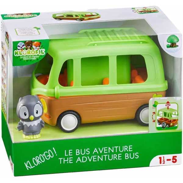 Tut tut ! Indispensable pour pouvoir voyager entre les univers Klorofil ! 6 places à bord du véhicule, ainsi qu’un coffre pour mettre les bagages. Magique, pour monter a bord, il faut appuyer sur le toit … « Pop ! » … pour voir le bus s’ouvrir puis se refermer. Il comprend 2 personnages de la famille Nocty.