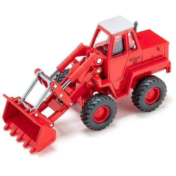 La chargeuse sur pneus historique Kramer se prEsente sous la forme d’un modèle siku avec une carrosserie en mEtal rouge et des jantes fidèles à l’original. Le bras de chargement et la pelle peuvent être dEplacEs et grâce aux quatre pneus à profil profond, il est EquipE pour toutes les utilisations.