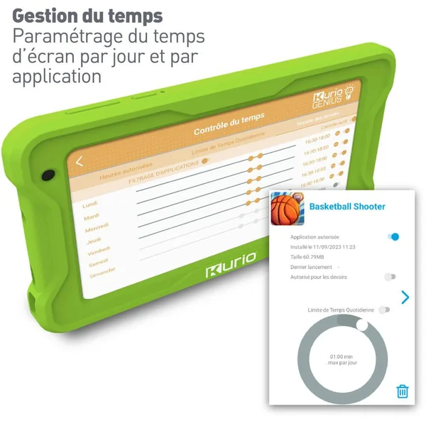Spécialement conçue pour les enfants, la tablette Gulli Kurio Connect 4 est dotée d’un écran tactile7″, 32 GO de mémoire extensible jusqu’à 128 GO, d’un processeur quadcore qui exploite Android 13.