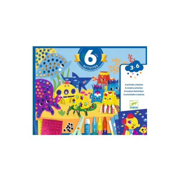Découvrez le coffret La mer et ses plaisirs 6 activités créatives de Djeco, un coffret de loisirs créatifs avec des heures de créations pour les enfants de 3 à 6 ans.