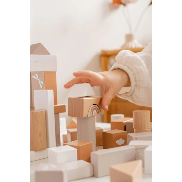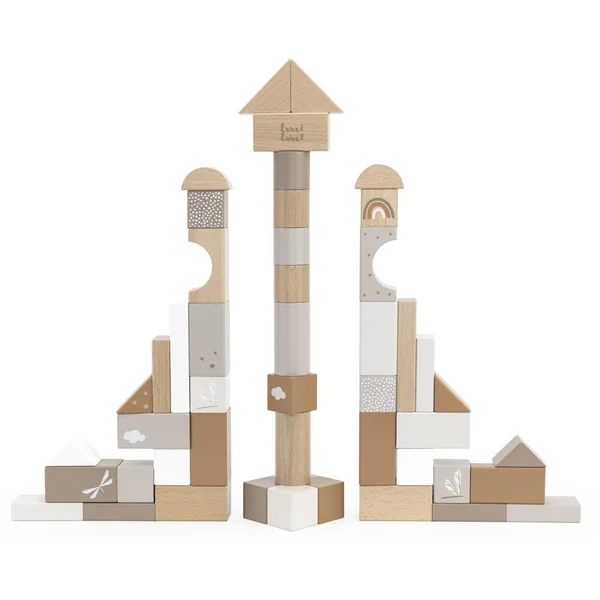 Conseil : le jeu de blocs est parfait pour compléter les autres articles en bois Label Label. Ils transforment n’importe quelle idée en une belle histoire complète,