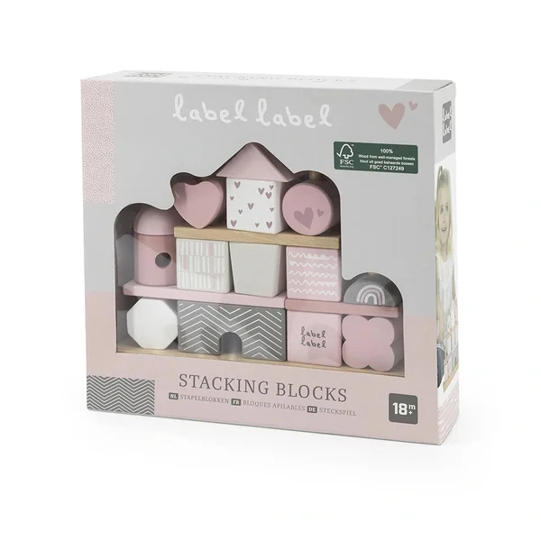 Introducing the Label Label – Stacking Blocks House in Pink, a delightful and engaging toy designed to inspire creativity and learning in young children. Crafted from high-quality FSC certified beech wood, this stacking toy is not only aesthetically pleasing but also environmentally friendly. The beautiful pink, white, and grey shades are applied using child-friendly water-based paint, ensuring safety for your little ones as they explore and play.