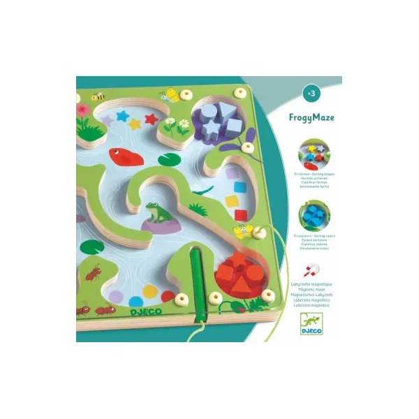 Découvrez lelabyrinthe magnétique Frogy Maze de Djeco, un jouet d’éveil en bois dans lequel les enfants dès 3 ans, devront parcourir les couloirs de ce labyrinthe grâce au stylo magnétique pour trier les pièces.