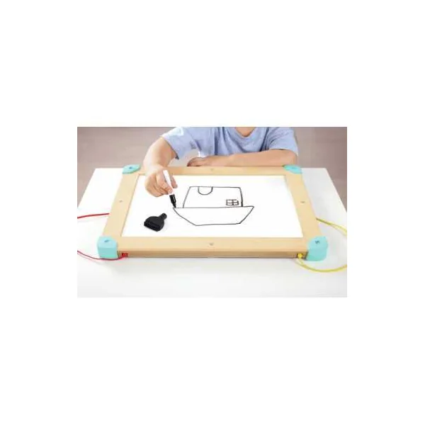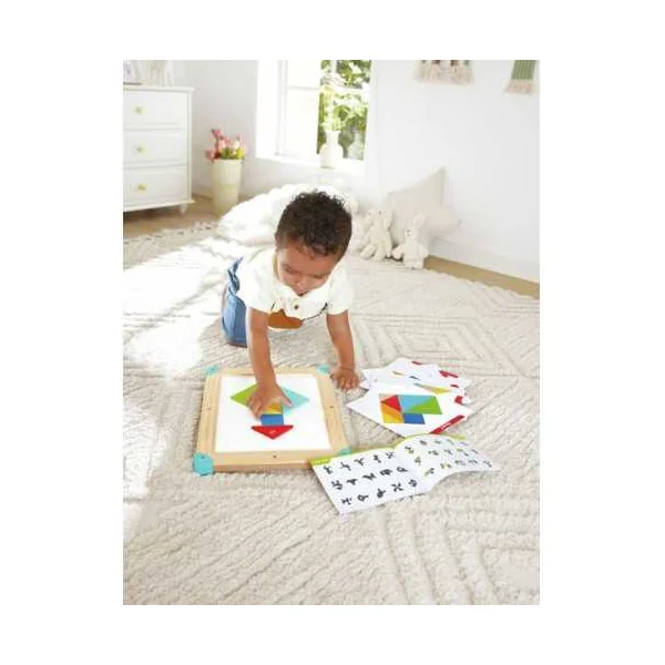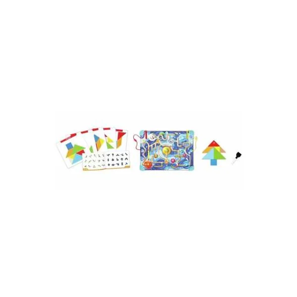 Ce jeu interactif 3-en-1 allie logique spatiale, créativité et motricité fine dans un design compact. D’un côté, un labyrinthe magnétique sur le thème de l’espace où les enfants guident des billes colorées à travers des pistes à l’aide d’un stylo magnétique inclus. De l’autre, un tableau blanc pour réaliser un puzzle tangram ou pour dessiner. Le tangram comprend 150 défis de difficulté progressive pour stimuler la reconnaissance des formes, la coordination œil-main et la résolution de problèmes.