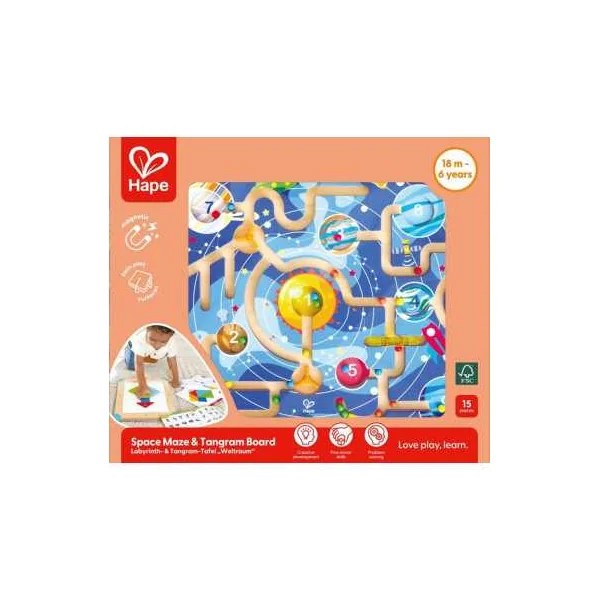 Découvrez le labyrinthe magnétique Tangram 3 en 1 de Hape, un jeu éducatif complet destiné aux enfants de 18 mois à 6 ans, qui réunit dans un format compact un labyrinthe magnétique sur le thème de l’espace, un tangram évolutif avec des défis et un tableau blanc pour dessiner ou créer en toute liberté.