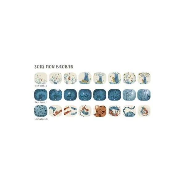 Là-bas au milieu de la savane, on aperçoit un lion, une girafe, un éléphant. Trois animaux attachants habillent une collection tendre et graphique. Dessinées à l’aquarelle par Elodie Coudray, les illustrations mettent en scène les personnages sur de jolies boites cadeaux et accessoires de décoration. Les couleurs sont naturelles et minérales, mélangeant l’ocre, le bleu et le terracotta, et les matières sont douces et résistantes: velours chiné, lin lavé ou lange coton.