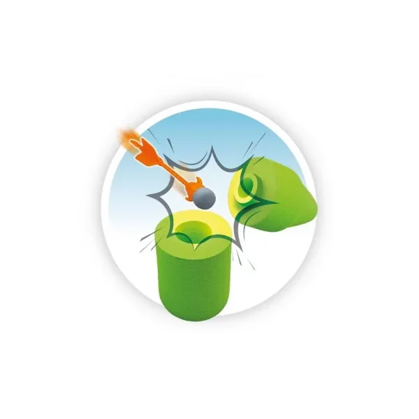 De conception légère et portable, votre enfant va tirer ses fléchettes avec son lance-pierre sur une bouteille en mousse qui « s’éclate » lorsqu’on la touche. Inclus : 3 fléchettes sécurisées et des élastiques de rechange.