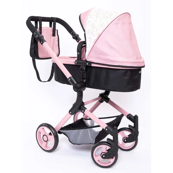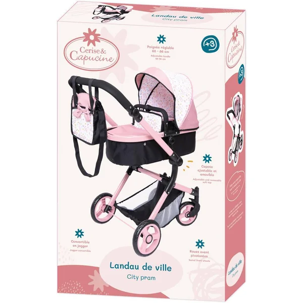 Le landau a une poignée réversible : elle peut être facilement déplacée des deux côtés. Appuie sur les boutons pour convertir le landau en poussette. Canopy (capote de poussette) protégeant la poupée du soleil ou du vent qu’elle soit couchée ou en position assise dans le landau. Capote ajustable et amovible.