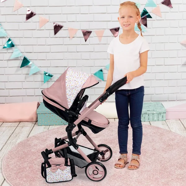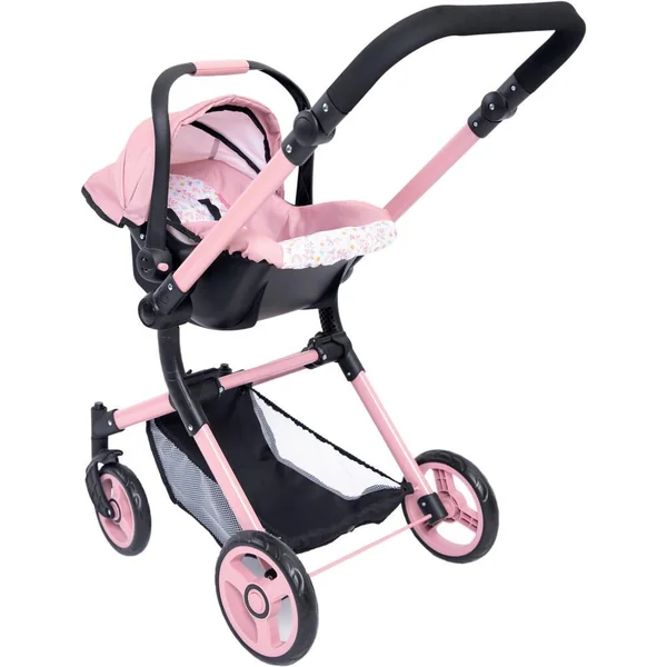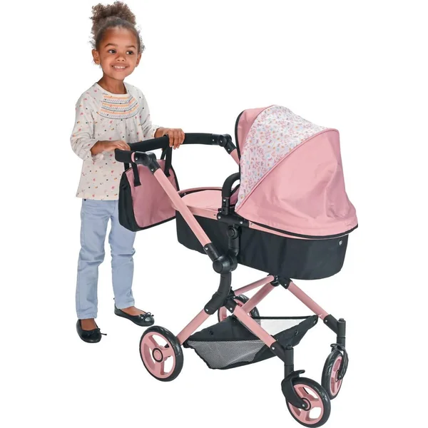 Châssis résistant. Pour poupée jusqu’à 52 cm (non fournie). Grâce à sa poignée ajustable en hauteur de 68 jusqu’à 86 cm, il est facilement adaptable à la taille de l’enfant. La nacelle ou porte-bébé se détache facilement et permet ainsi à l’enfant d’avoir sa poupée face à lui ou face à la route.