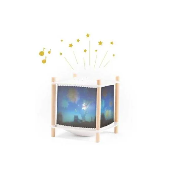 En fonction veilleuse apaisante: un film tourne devant les yeux apaisés et ébahis de votre enfant. En fonction projecteur d’étoiles : la lanterne projette des étoiles au plafond comme si votre chambre se transformait en ciel étoilé. En fonction veilleuse musicale: 4 berceuses sont préenregistrées et vous pouvez diffuser d’autres histoires ou musiques de votre choix grâce à la connexion sans fil. En fonction détecteur de pleurs : la veilleuse se rallume automatiquement.