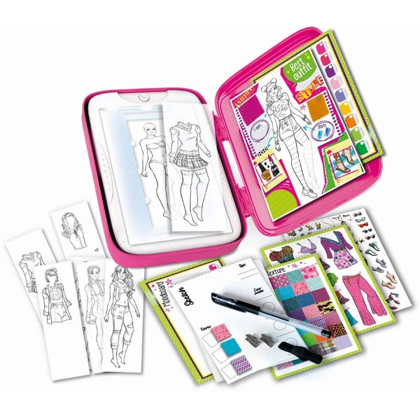 Avec cet atelier de mode, tu plongeras dans le véritable univers des stylistes pour créer des collections tendances et exclusives. Grâce à la table lumineuse, tu pourras dessiner facilement toutes tes idées mode. Le coffret comprend également un stylo à encre de Chine pour concevoir tes croquis personnels, comme un vrai créateur ! Avec plein de modèles de tenues à dessiner et des autocollants repositionnables.