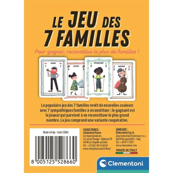 Découvrez le charme intemporel du Jeu des 7 Familles, un jeu de cartes captivant qui divertira les jeunes joueurs. Ce jeu de société classique est idéal pour partager des moments mémorables en famille ou entre amis, tout en stimulant la mémoire et la stratégie.
