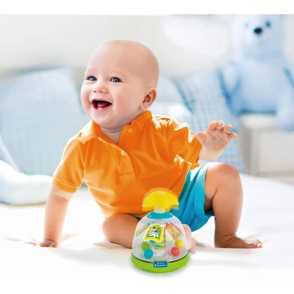 Une pression sur le haut du manège et il se met à tourner ! Les billes tournent également en faisant du bruit.