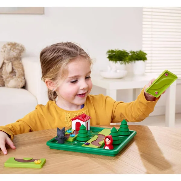 Afin de trouver le chemin qui mène chez Mère-Grand, votre enfant doit résoudre 24 défis de difficulté croissante. Toutefois, il faut rester vigilant, car le grand méchant loup rôde aussi dans la forêt. Votre bambin peut jouer avec lui en surmontant 24 autres défis. Il doit ainsi créer deux itinéraires distincts menant à la maison de Mère-Grand : l’un destiné au Petit Chaperon Rouge et l’autre au loup.