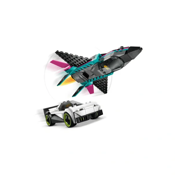 The LEGO City Jet vs. Car set is packed with realistic details that enhance the play experience. The jet boasts swept-back wings, twin vertical fins, and stabilizers, while the supercar features an accessible cockpit with a racing seat. Kids can engage the jet’s afterburners by sliding a lever, adding an interactive element to their playtime. The inclusion of pilot and race driver minifigures allows for immersive storytelling as children create their own epic race scenarios.