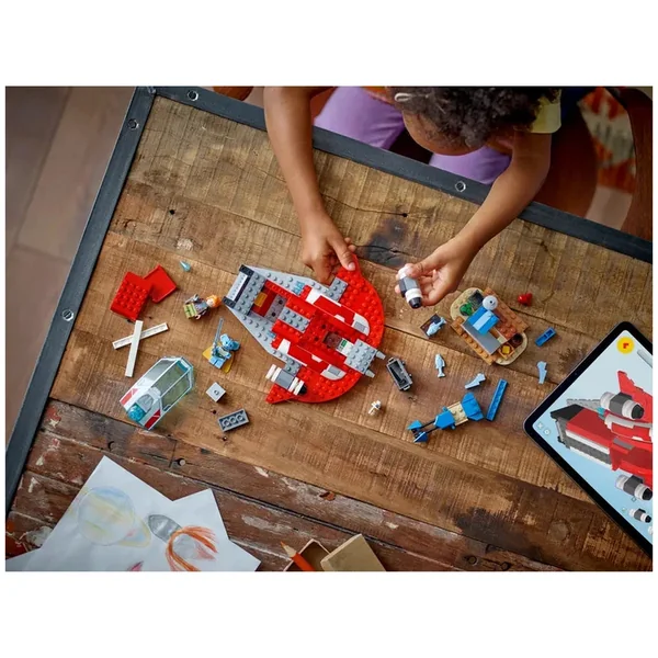 Encourage family bonding and collaborative play with this engaging construction set. The step-by-step pictorial instructions included in the box make it easy for parents and older siblings to assist young builders, creating opportunities for shared experiences and quality time together. The compact size of the starship, measuring over 2 inches high and 7 inches long, makes it perfect for play on the go, ensuring that the adventure can continue wherever you are.