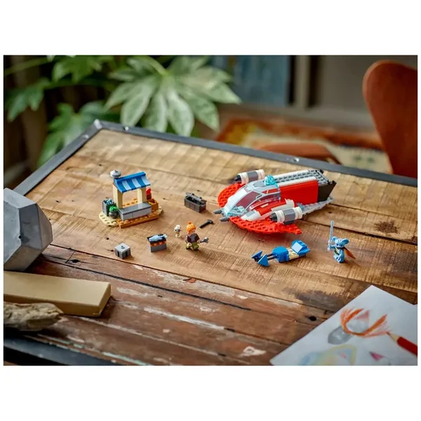 In addition to the starship, this construction set comes with a buildable speeder bike that fits perfectly inside the starship, enhancing the play experience. The inclusion of a small marketplace build, complete with barbecue and food elements, encourages imaginative storytelling and creative play. Children can explore the bustling marketplace while their characters embark on daring missions, making every play session a new adventure.