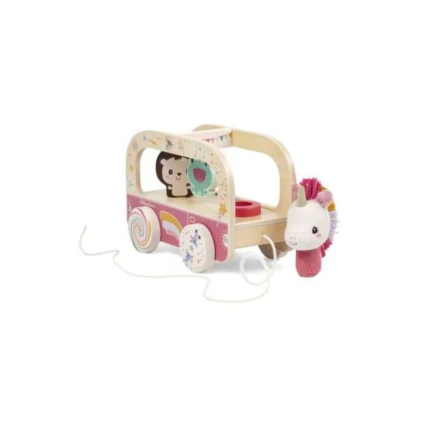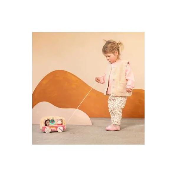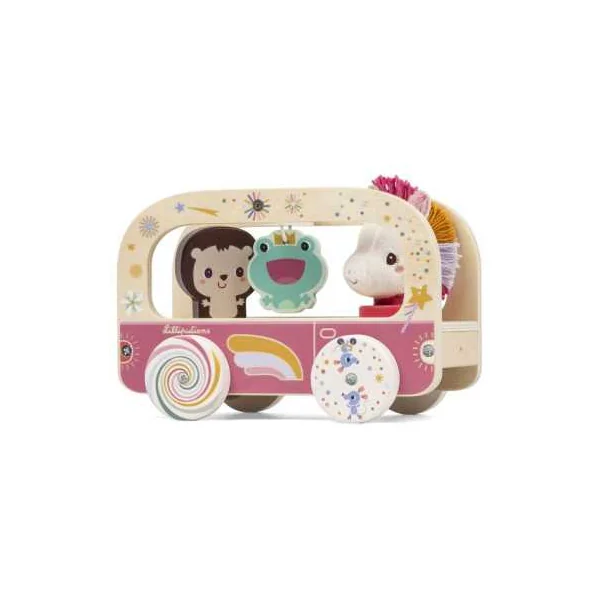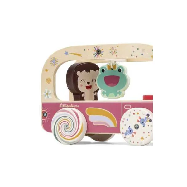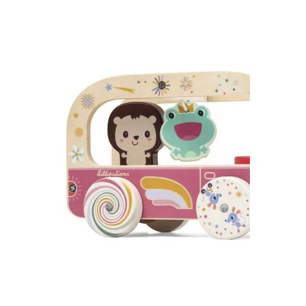 Découvrez Léna Bus magique de Lilliputiens, un jouet à tirer en bois et tissu conçu pour les enfants dès 10 mois.