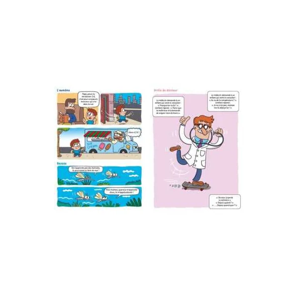 Ce livre offre plusieurs formats de BD pour s’adapter à toutes les envies de lecture : des strips de 2 ou 3 cases, des gags sur une page, des illustrations humoristiques…