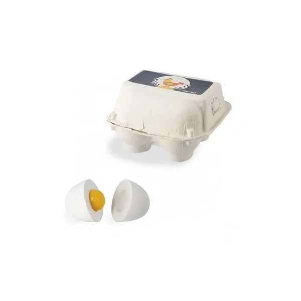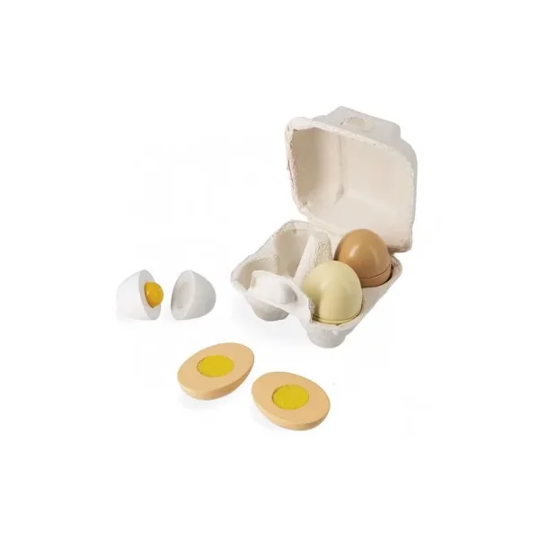 Découvrez la dinette Les oeufs du petit chef de Janod, une boite de 4 oeufs en bois pour jouer autour de la cuisine avec ses copains ou ses poupées à partir de 3 ans.